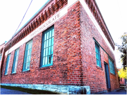 そう、この香り、このチョコレート色の歴史を感じさせる建物、実はここが今回の目的地、フリーモントにあるローカルの「チョコレートファクトリー」。この美味しい甘くてほろ苦い香りは、ここから漂ってきているのです。