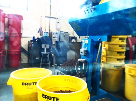 この丁寧な説明と、「美味しいテオチョコレートのそれぞれの味を一つひとつ味わいながら学ばせていただく」工程が終わると、次に、案内は場所を移動して工場の中のカカオ豆を焙煎する中枢部分へと移動します。