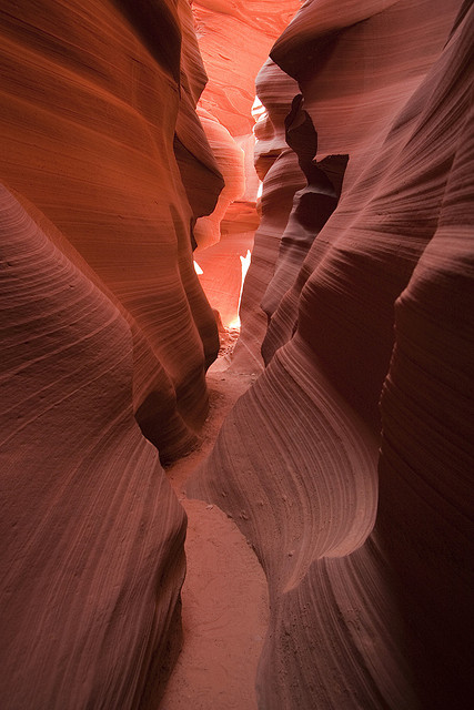 アッパー・アンテロープ・キャニオンとロウワー・アンテロープ・キャニオンで2ヶ所あるのですが、よく雑誌やテレビ等で見る機会があり観光客が良く訪れるのはアッパーの方です。しかしロウワーの方もおススメで、アッパーより幅が狭いので一味違った曲線美を楽しめます。そして制約事項がアッパーに比べて少なく中を自由に探検できますから、本当に肌で触れながらその美しさや凄味を体感することが出来ますよ。