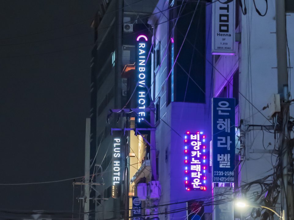韓国ソウルの繁華街にはたくさんのモーテルがあります。「motel」や「hotel」と記載された看板を探しましょう。