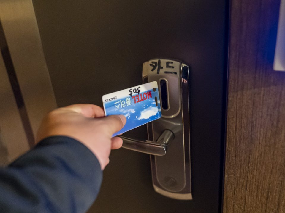 ルームキーはカードの電子式。カードをかざすとロックが解除されます。