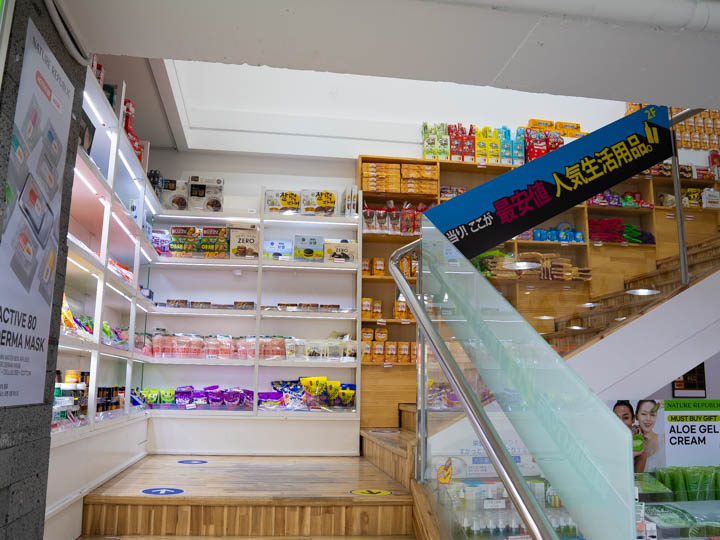 1階は化粧品やスキンケア用品などを中心に、2階にはお菓子やラーメンなどの食品やシャンプーなどの日用品などが置いてあるので、韓国旅行時のお土産の購入にも便利です。
