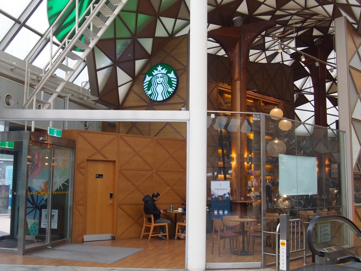 FAMILLE STATIONでとくにおすすめしたいのが「STARBUCKS COFFEE FAMILLE PARK R店」。スタバの韓国進出15年目を記念した店舗で、外装も内装も特別感があります。