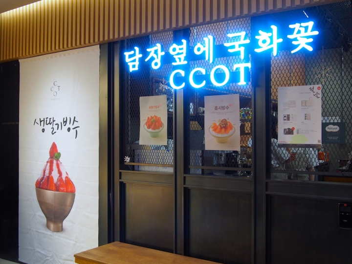 韓国のかき氷・ピンスを食べられる「COOT」。凍らせた牛乳を削って作る甘くてふわふわな氷とフルーツやあんこ、シロップの相性は抜群です。体を冷やさないよう、一緒に温かいお茶を注文するのがおすすめ。
