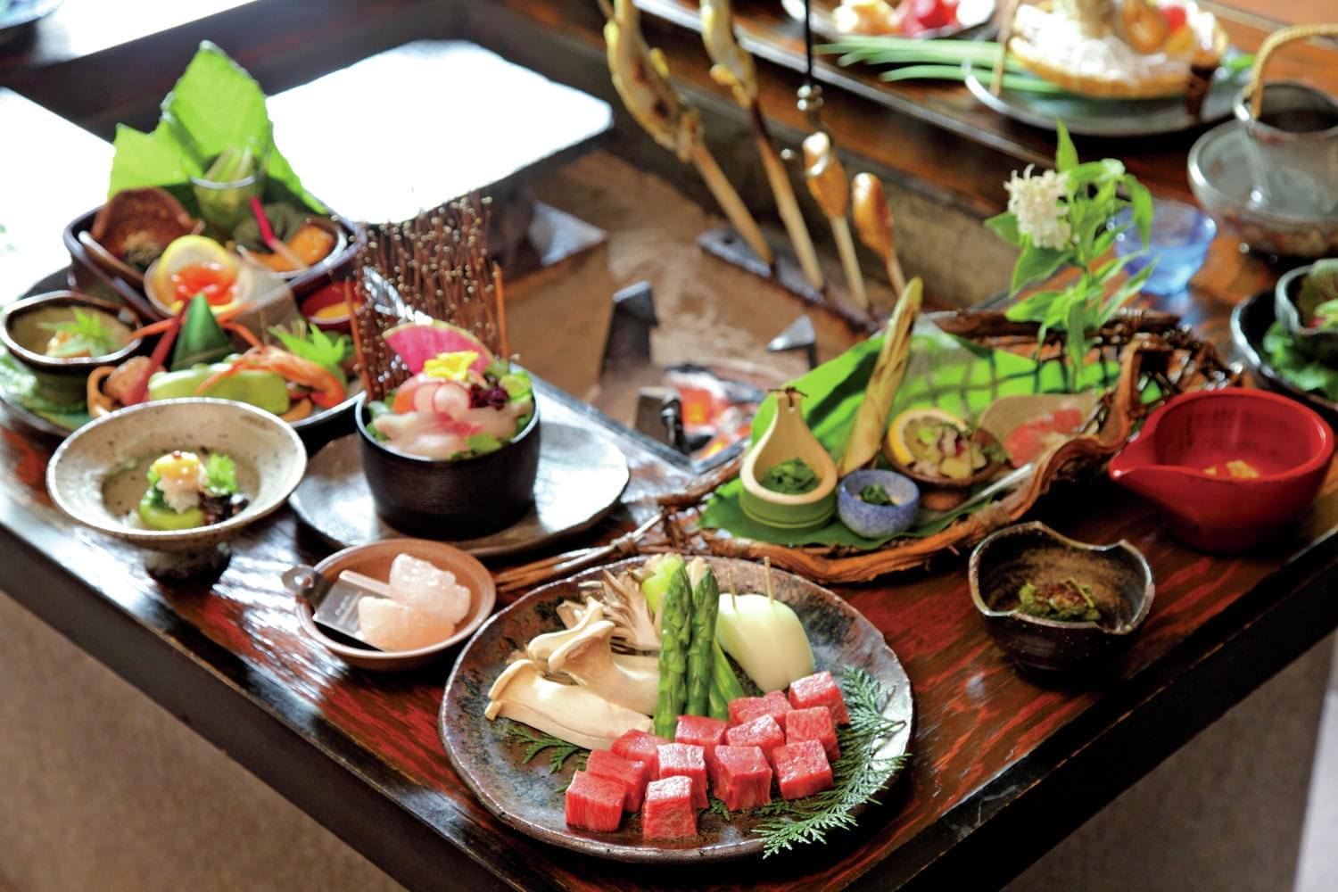 外国人専用だった清水ホテルの跡地に、全室100㎡の離れサーマルスイートや湯屋、食事棟が点在。上質感と癒やしに満ちた空間が広がり、独特の風情を見せます。食材を生かした山家料理も一級品。