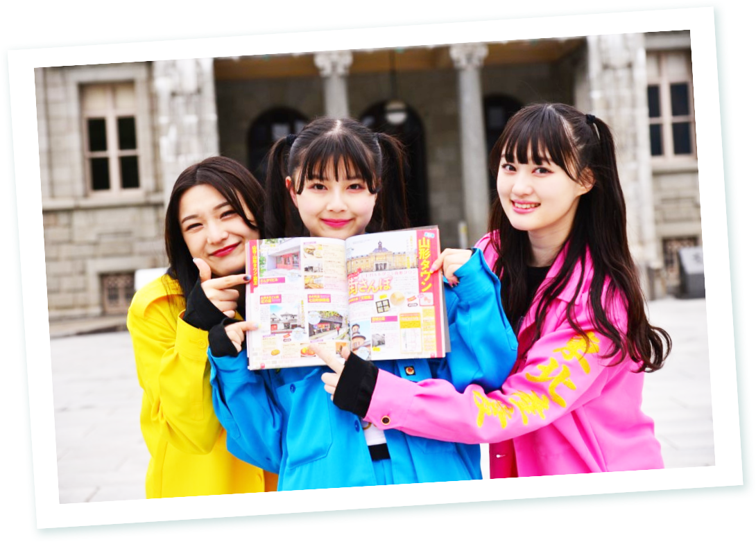 6月号に引き続き、東北愛たっぷりなアイドルグループ「いぎなり東北産」から、藤谷美海さん、橘花怜さん、安杜羽加さんが登場!山形駅からすぐ行ける、ファンの”皆産”やまっぷる読者に教えたい「推しスポット」をガイドしていただきました!