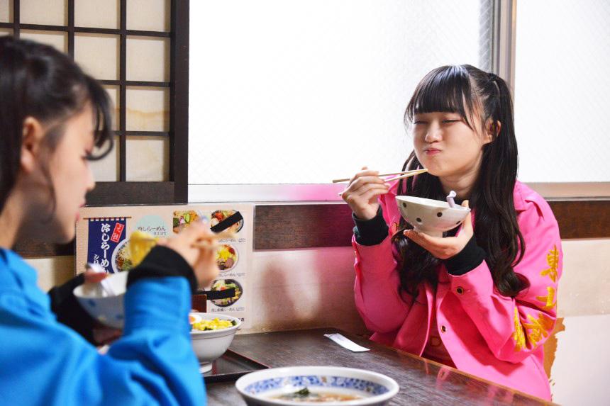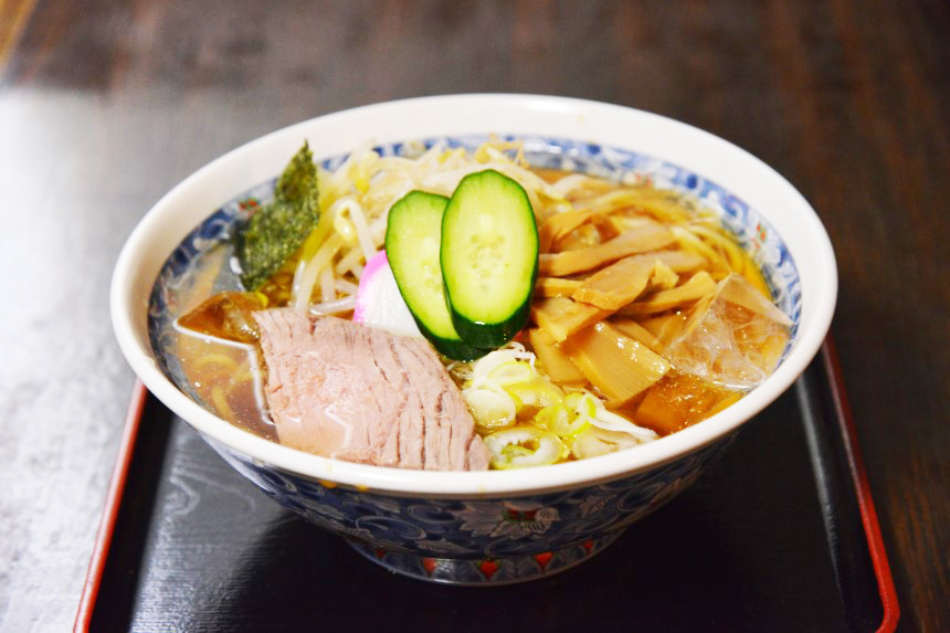 かつて国内の最高温度を記録していたこともある山形市の夏は暑い。そんな厳しい環境から昭和27(1952)年に生まれたのが「栄屋本店」の冷しらーめんです。牛エキスとかつお節、昆布などのだしが効いたまろやかなスープにモチモチ食感の麺が絶妙に絡みます。山形市民にたちまち人気となった冷しラーメンは、夏に限らず、今ではオールシーズン楽しめるメニューに。