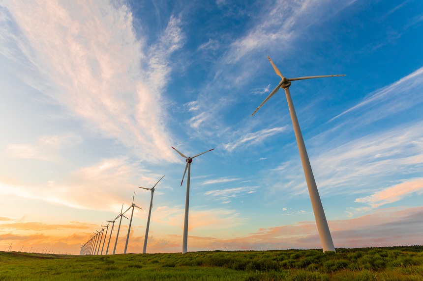 天塩川河口に差し掛かる道道106号に並ぶ風車群。高さ約100mの風車が28基、約3.1kmにわたって一直線に連なります。老朽化のため2025年4月から順次撤去されるため、現在の風車群が見られるのはあとわずかです。