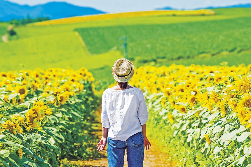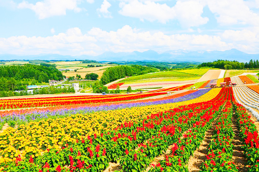 地平線まで続くなだらかな丘に広がる花々!北海道の短い夏を謳歌するように一斉に咲き誇ります。