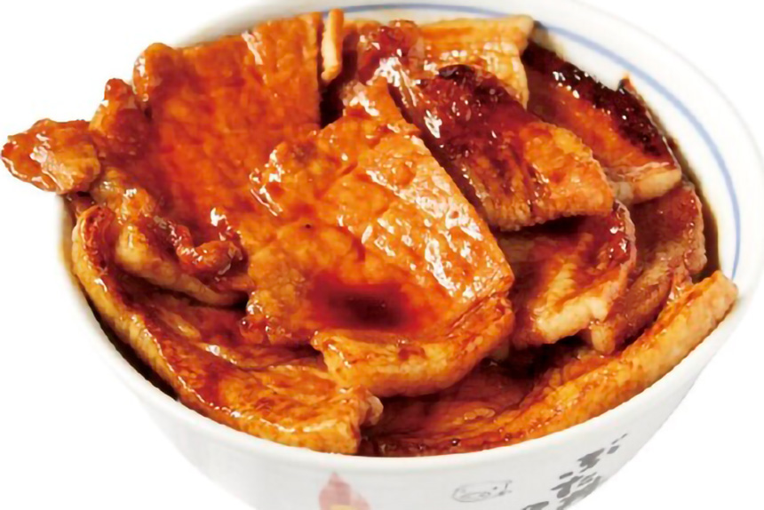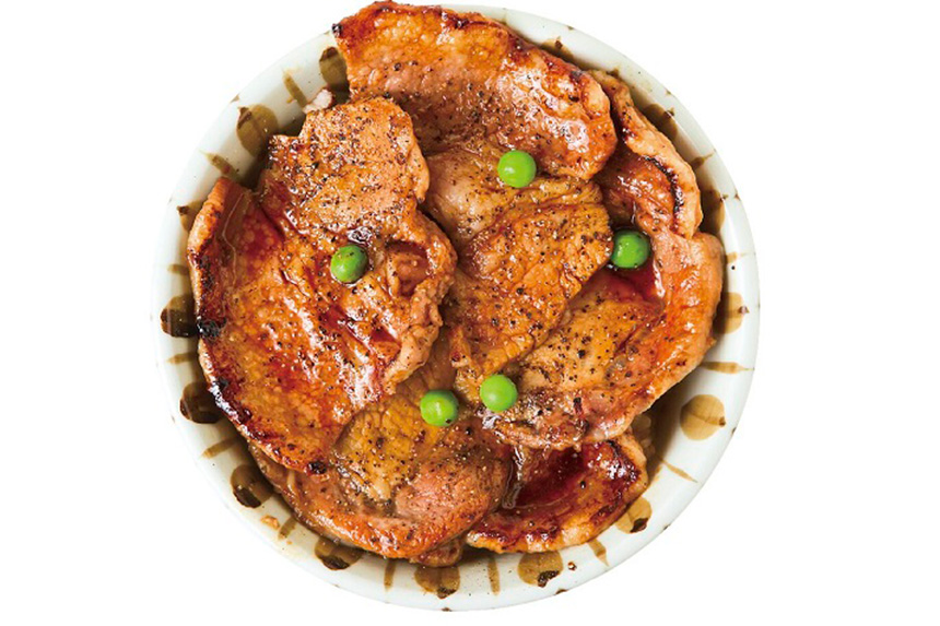 写真は、「豚丼(4枚)」。霜降り肉の脂の甘みに黒胡椒のピリッとした辛みが、いいアクセントになっています。