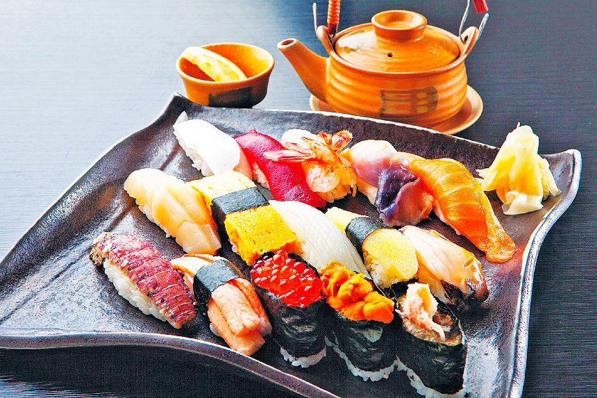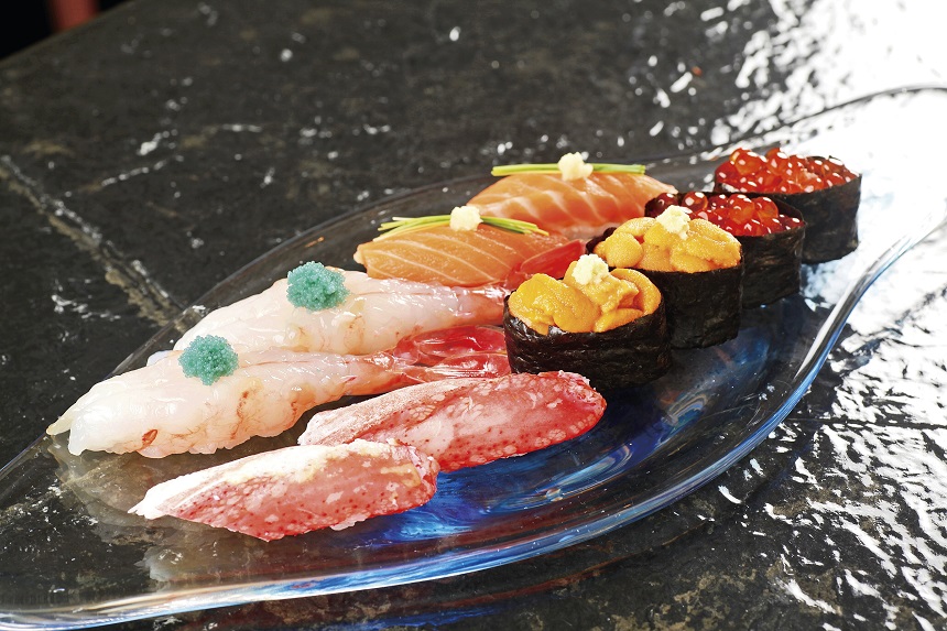 小樽ガラスの器で、濃厚なうまみの寿司を