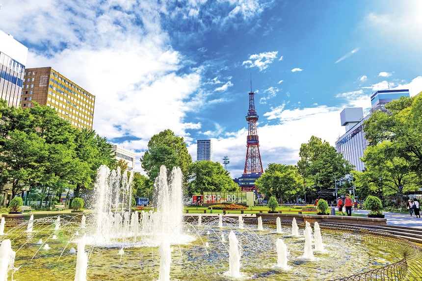 札幌中心部に約1.5kmにわたって続く緑地。花壇や噴水、彫刻が点在する憩いのスポットです。西3・4丁目では噴水とテレビ塔をバックに撮影できますよ。「さっぽろ雪まつり」など数々のイベントの会場としてもにぎわい、四季を通して楽しめます。