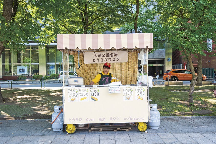大通公園の名物、トウキビ(トウモロコシ) の常設ワゴンも西3・4丁目