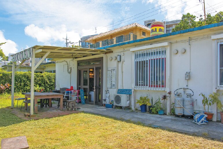 宜野湾市の街と海を見下ろす外国人住宅を改装した洋服店&ハンバーガーショップ。地元のベーカリー特製のふっくらした白焼きバンズを使用したハンバーガーは自慢の味です。見た目も美しいブリコA.B.C. BURGERは、アボカドとチーズ、島豚のベーコンをサンド。ポテト付き。