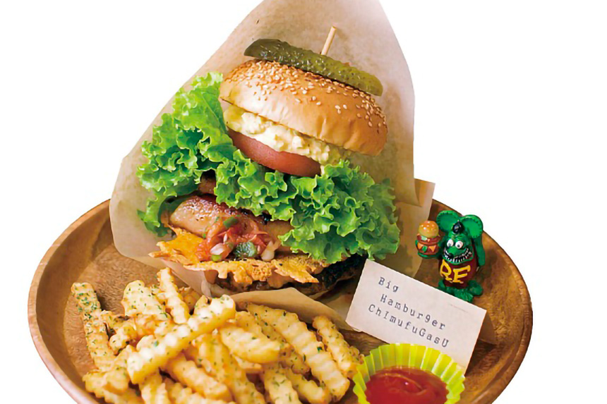 瀬長島ウミカジテラスにあるハンバーガー専門店。「氾濫バーガー」の名のとおり、バンズに収まりきらないほどボリュームたっぷりのハンバーガーが名物です。見た目はもちろん、その味にも大満足。カリカリチーズが味のアクセントになっています。セットで注文するとドリンクとポテトが付きます。