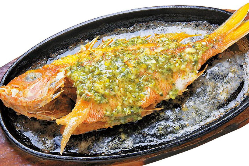 漁師町として知られる糸満市にあるイマイユ(新鮮な魚)料理店。沖縄の伝統料理を現代風にアレンジしたメニューが味わえます。特製のアーサバターソースをたっぷり使って、香ばしく焼き揚げるイマイユのバター焼きは数種類の魚からチョイス。