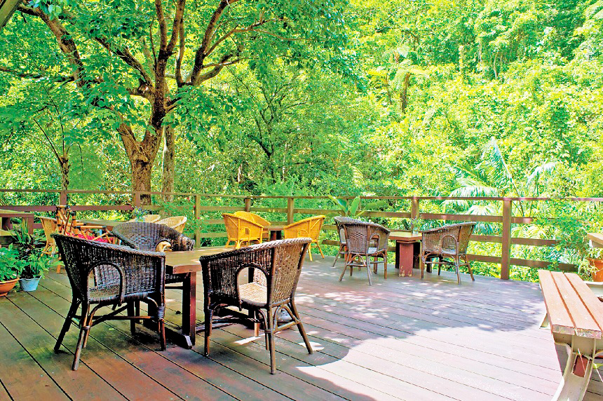 緑に囲まれた隠れ家的カフェ。ダイナミックな亜熱帯の自然を間近に感じられるウッドデッキ席が人気です。看板メニューのピザは生地とソースを手作りし、石窯で焼き上げる本格派。