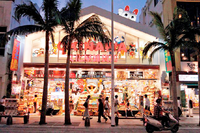 那覇のど真ん中に約1.6kmにわたって延びるメインストリート。県庁北口交差点から安里三差路交差点まで、両サイドにみやげ物店がぎっしりと連なりショッピングにもってこい。飲食店も充実しています。