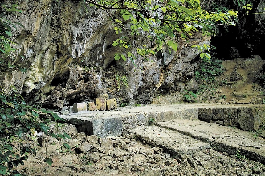 御嶽の最も奥にある拝所である写真の三庫理(さんぐーい)には現在は柵があり立入禁止。