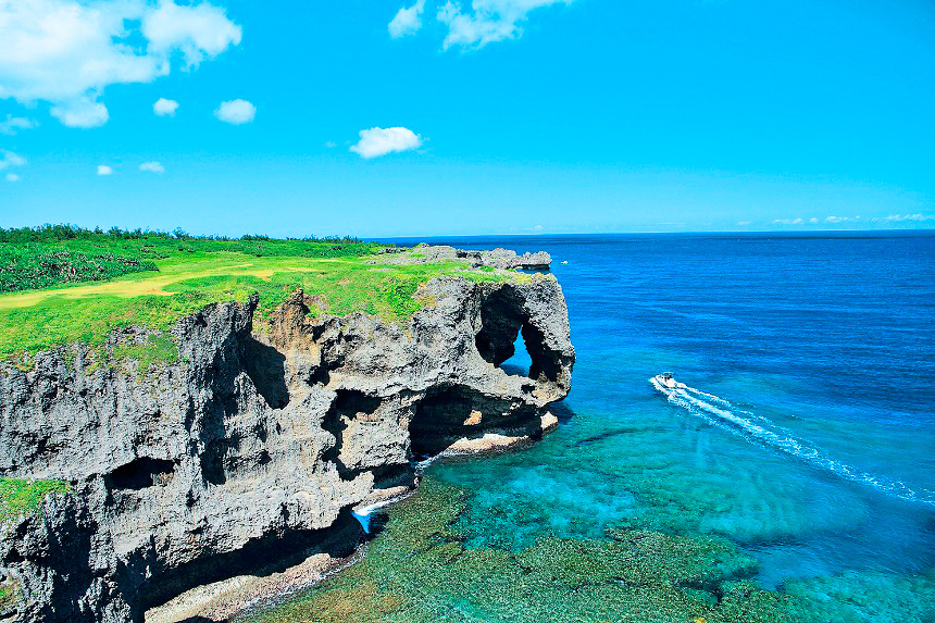サンゴの森が広がるエメラルドグリーンの海と、迫力あふれる琉球石灰岩の断崖からなる雄大な景色が広がり、古くから観光名所として知られています。