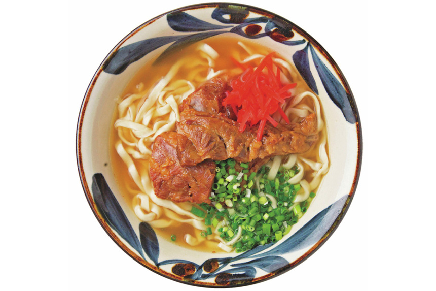 数ある沖縄料理の中でも、とくに知名度の高い郷土名物。地域により麺の形状や、スープの味付けは変わりますが、風味豊かなカツオだしのスープと太麺の組み合わせがもっとも有名です。