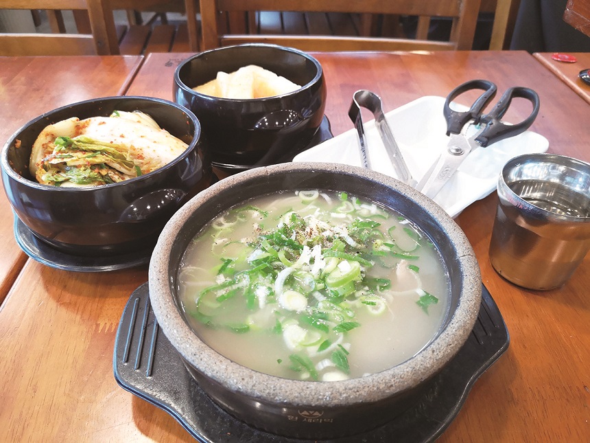 私が大好きな韓国料理の一つが、牛骨などをじっくり煮込んで作る滋養食、ソルロンタン。せっかくなら有名店へということで、ミシュランのビブグルマンに選ばれた1949年創業の「麻浦屋(マポオッ)」へ。濃厚スープは、雑味がまったくなく美味!