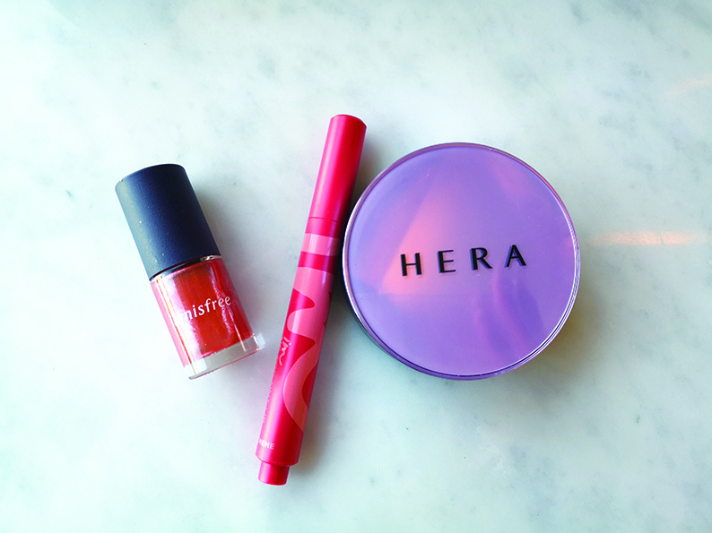 到着早々、自分用に買い足した「HERA」のクッションファンデと「I’M MEME」のリップに「innisfree」のマニキュア。