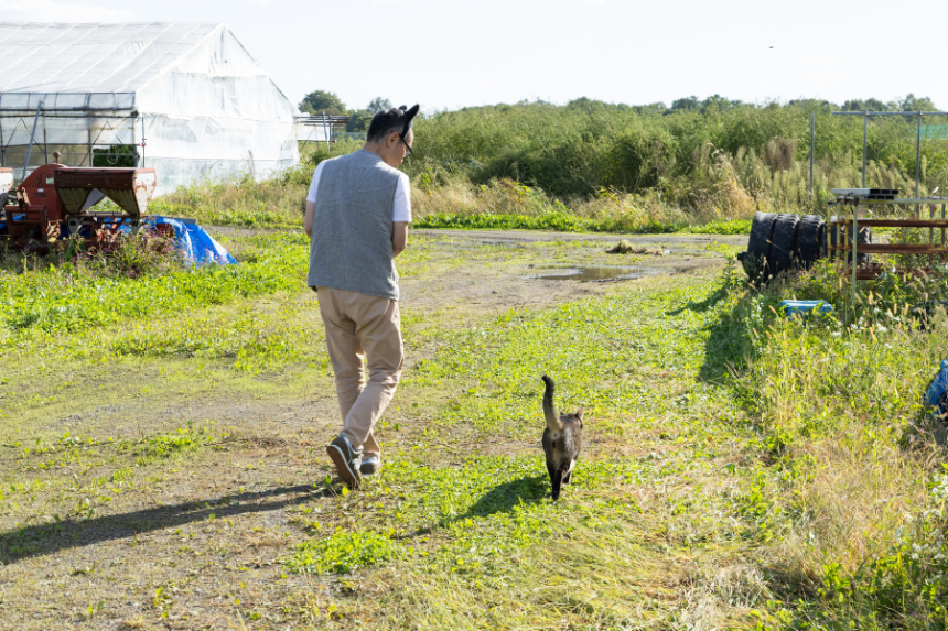 しばらく遊んで慣れてもらったところでかわいい表情の撮影をスタートしますが、実は飽きられた後がシャッターチャンス!その後はついて行っても警戒されないので、いろんな場所で撮れますよ。でも、家の敷地には勝手に入らないように気をつけてくださいね。