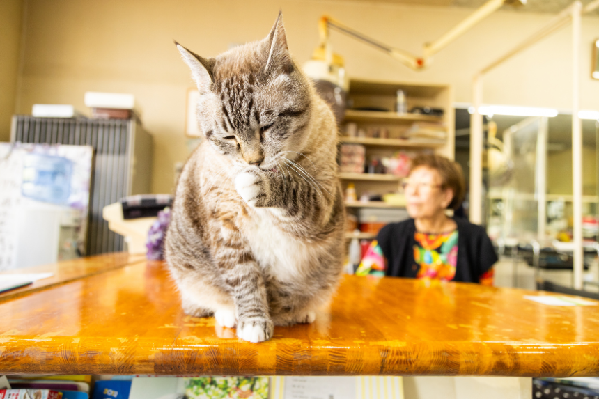 この取材で一番仲良くなったのは、小樽のヴィナス美容室のハッピーちゃん。ご家族やお客様のにぎやかな声に囲まれて暮らしているハッピーちゃんですが、保護したときはとても小さく弱りきっていた子猫だったそうです。ちょっぴり豊満で元気な体は、懸命な治療とご家族の愛情の賜物なのですね。