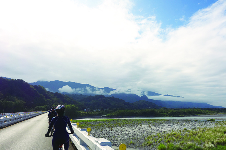 秀姑巒溪にかかる大橋を渡るところ。山にかかる雲の様子がなんとも幻想的で、思わず足を止めそうになった瞬間。