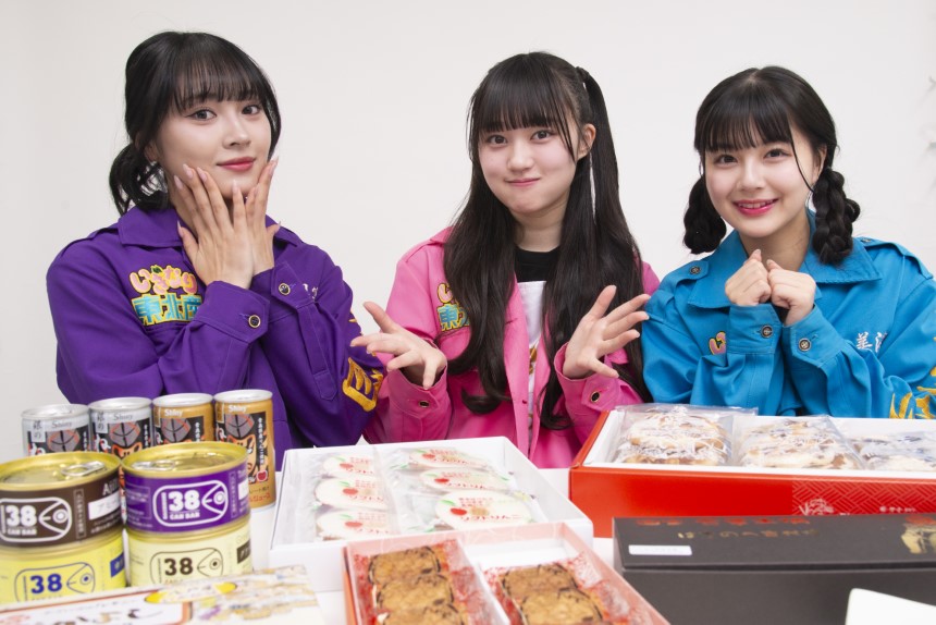東北出身のアイドルグループ「いぎなり東北産」から、北美梨寧さん、橘花怜さん、藤谷美海さん(左から順)の3名が登場!