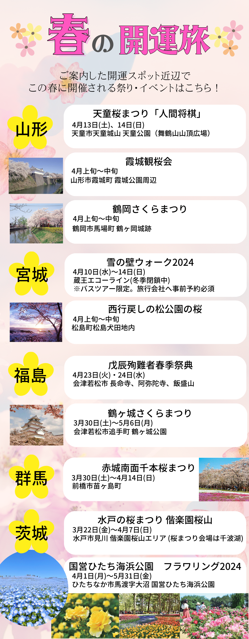 新年度が始まりました!新しいスタートとなる4月には、運気アップする旅にでかけませんか?2024年の恵方は、東北東。北関東~東北のあたりは今、雪解けが進み待ちに待った春を迎えています。恵方にある、縁起よい開運スポットをご案内します!