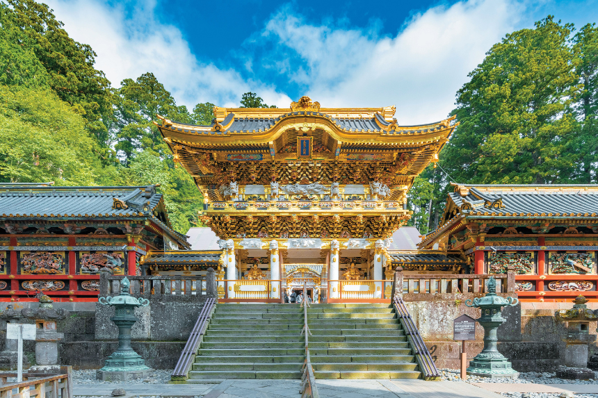 徳川家康を祭る世界文化遺産・日光東照宮は、江戸城、久能山、富士山と縁が深く、運気が集まっていると言われています。最強パワースポットは、唐銅鳥居の中に陽明門が入って見える位置。頭上に北極星を仰ぐまさに開運スポットです。