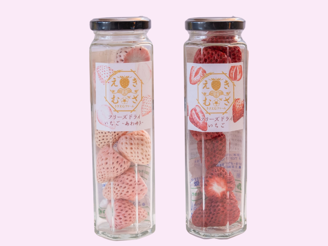 市内産いちごの甘味や酸味を凝縮した、フリーズドライいちご1280円