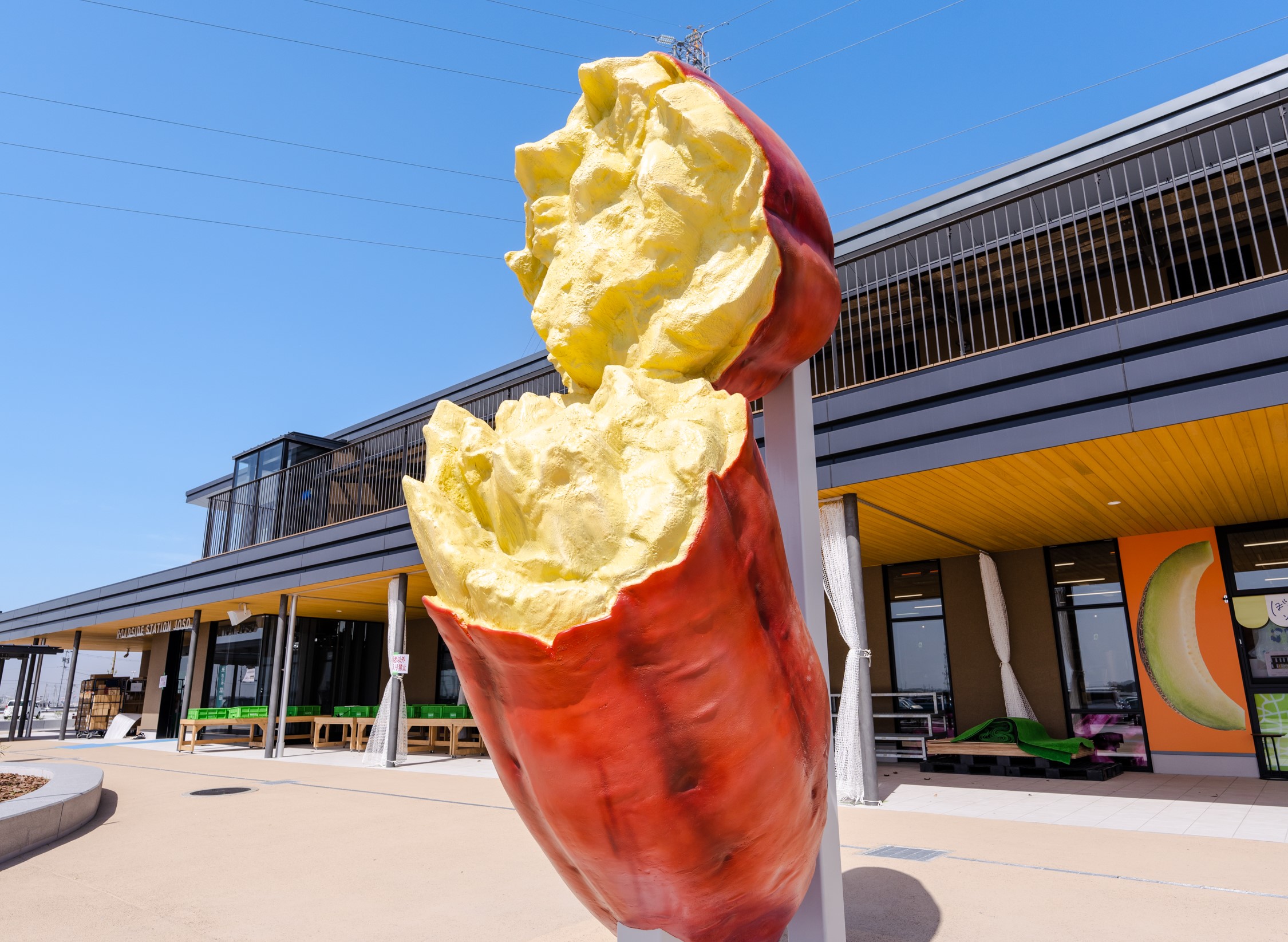 地元の生産者の情熱や食文化に触れ、来園者の心も「焼きいものようにほくほくと温かくなってほしい」との思いが込められた焼いものオブジェがシンボル