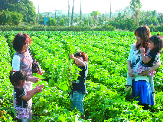 1年をとおしてさまざまな農作物が植えられ、収穫体験などが楽しめる併設の農園