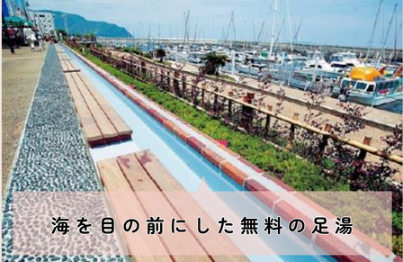 日帰り天然温泉施設や、一度に70名が利用できる天然温泉の足湯も!