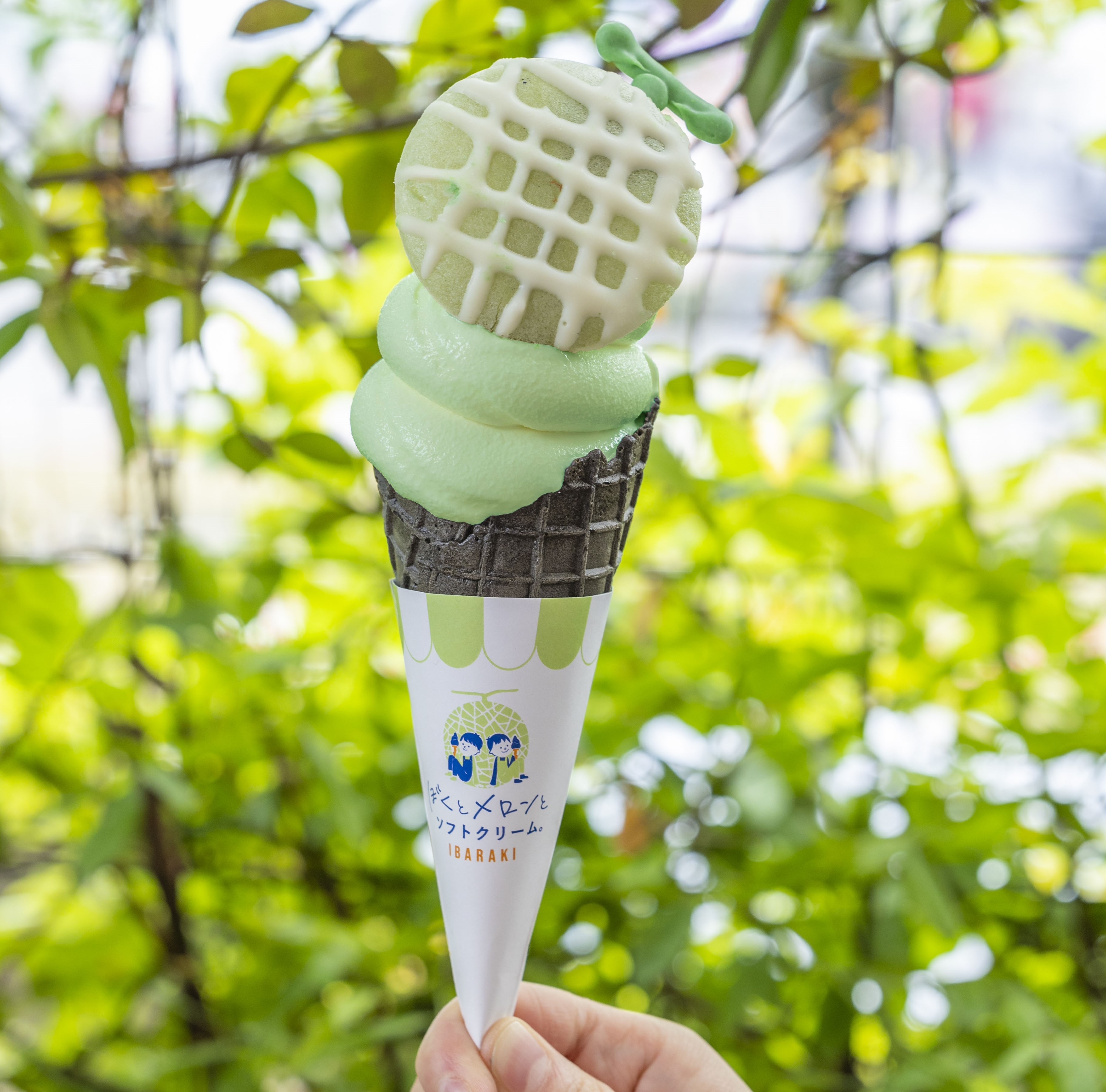 メロンペースト入りソフトにメロン形の最中を