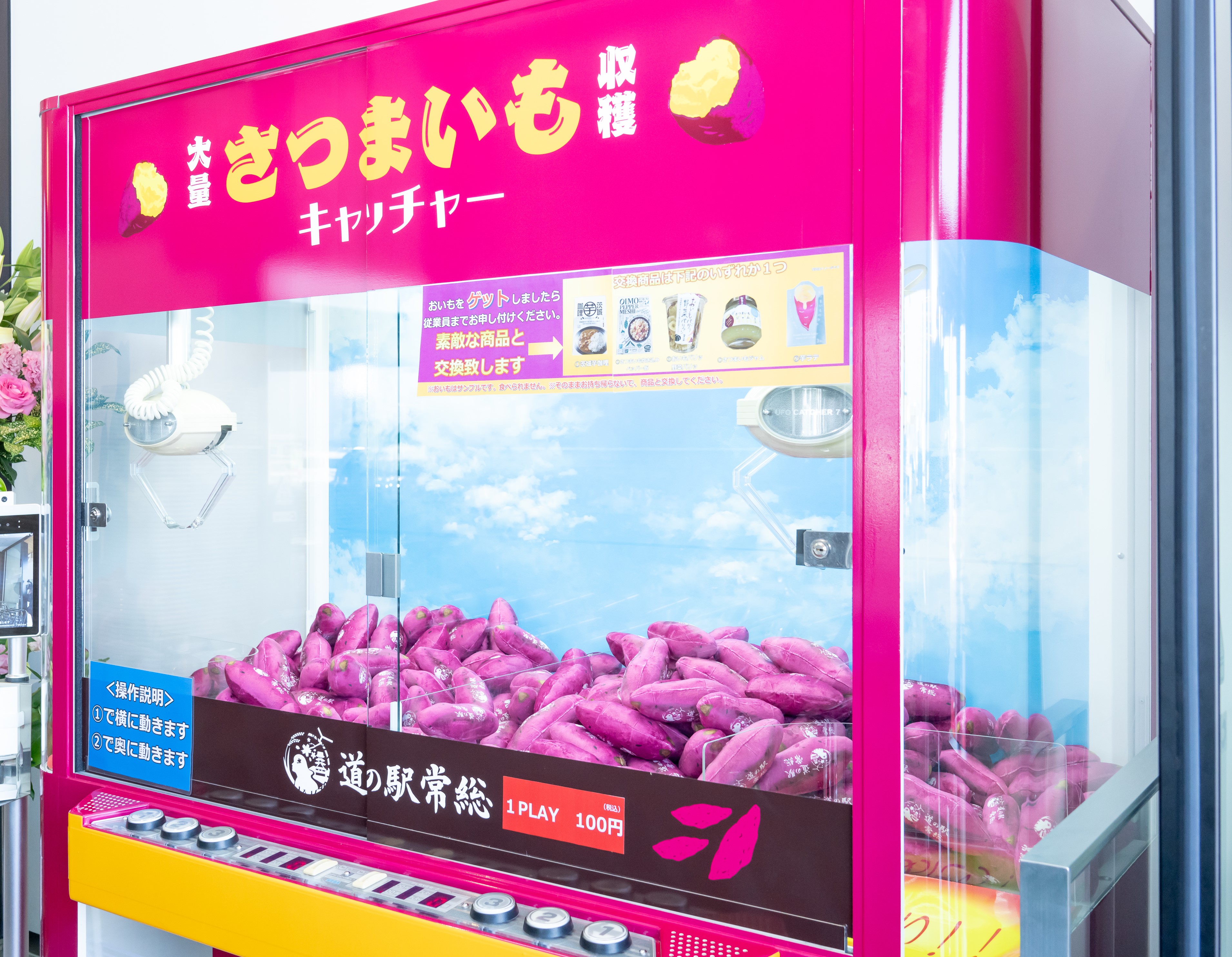 アイテムをゲットすると、すてきな商品に交換できるさつまいもキャッチャー1回100円