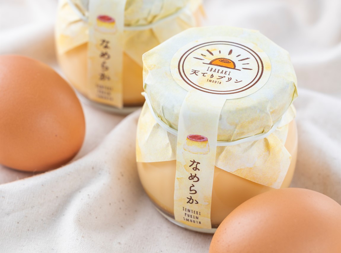 餌にこだわり平飼いで育てた道の駅オリジナルの卵・天てり卵を使った、天てりプリン なめらか380円