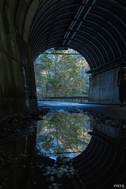 夢のつり橋は、寸又川が注ぐダム湖にかかっています。チンダル現象と呼ばれるこの現象は、湖の底まできれいで微粒子やプランクトンなどが非常に少ないこのダム湖ならではの現象。波長の長い赤い光が吸収され、波長の短い青い光が反射されてることにより、きれいな青に見えるのです。
