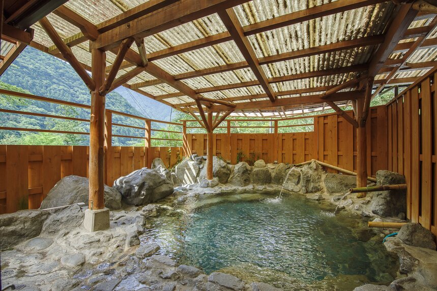 夢のつり橋の帰着点になっている寸又峡温泉は、アルカリ性単純硫黄泉のとろりとした湯が特徴で今もなお秘湯の趣を残しています。美味しい蕎麦の店やおしゃれなお土産ショップ、足湯カフェなどもあるので、散策も楽しい温泉街です。