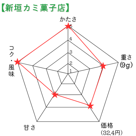 *「かたさ」はザクザクと固めの食感を5、さくさくとした食感を4や3にしています。