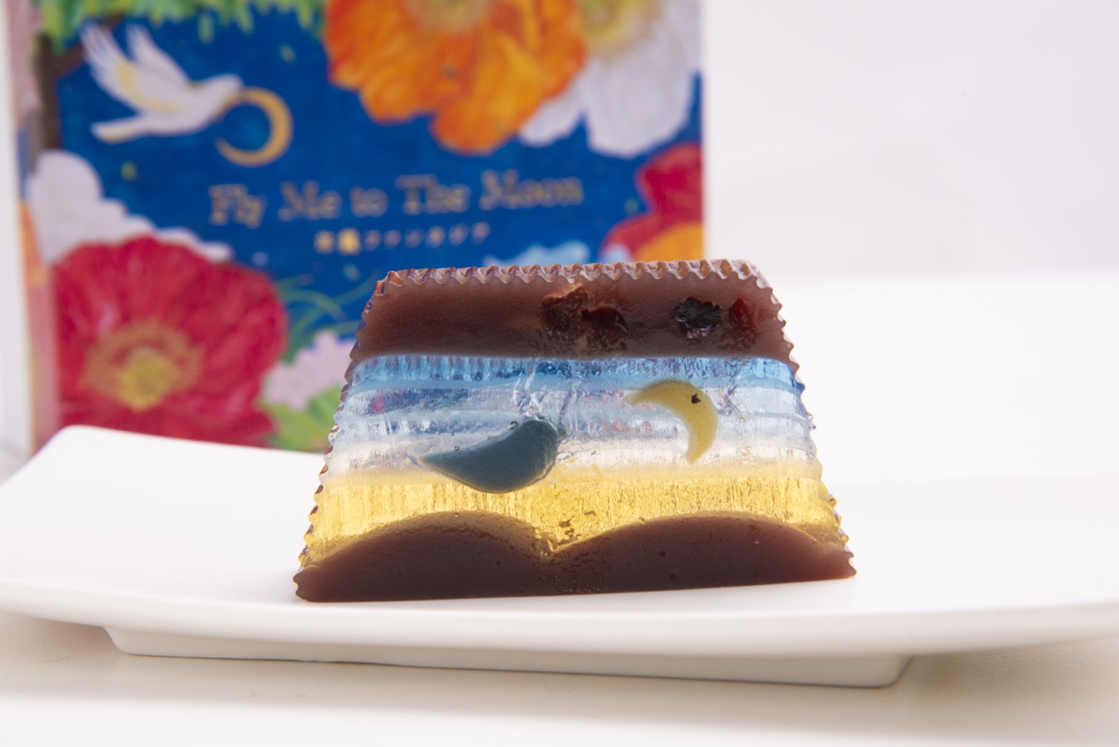 会津の老舗和菓子店長門屋が作った羊羹「Fly Me to The Moon」に3人とも興味津々。「見た目が美しすぎて、食べるのもったいない!」と安杜さん。「あれ、なんか鳥さんはちょっと味が違う」と気が付いたのは吉瀬さん。鳥の形の透明なパーツにはレモン羊羹を使っています。そのほかレーズンやクルミなど異なる食感をアクセントにした上品な羊羹の味に、3人とも魅了されていました。