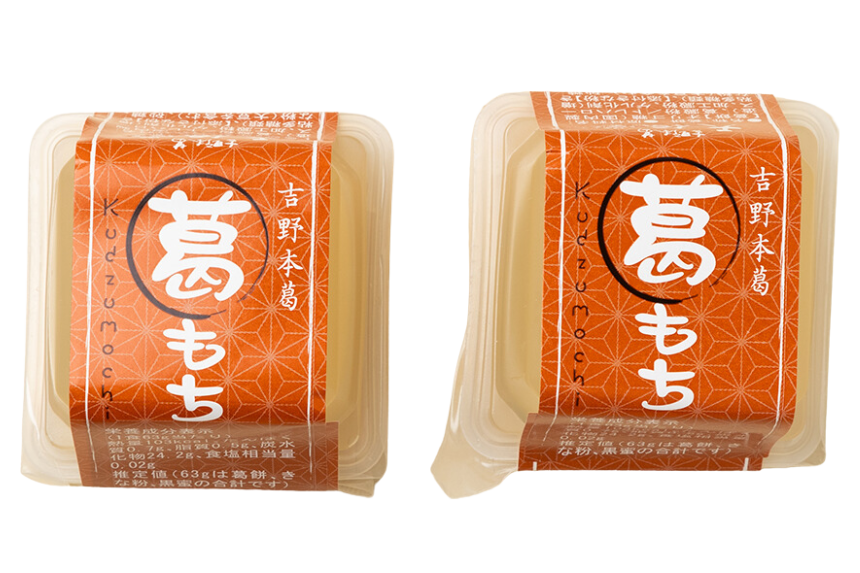 吉野晒という吉野地方独自の製法で精製した純白のくず粉は「白いダイヤ」とよばれているそう。4つのなかでいちばんやわらかくもちもちとした触感です。1つは63g(1人分)の大きさ。