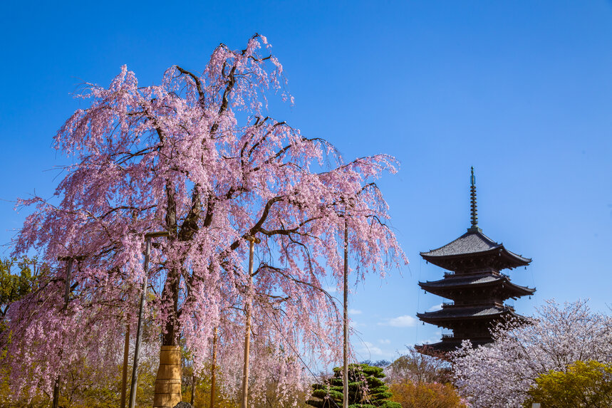 満開の「こぼれ桜」、花が舞い散る「桜吹雪」、水面に浮かび流れていく「花筏」、そして夜桜と、時期や時間によって変幻する京都の桜の魅力をお届けします。