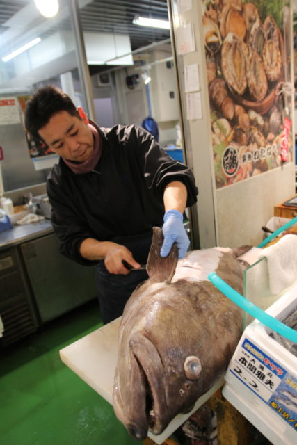 この日は奥で大きな魚をさばいていました。