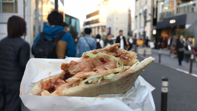 そういえば、コロッケしか食べていません。そこで、何か美味しそうなものはないかとキョロキョロしながら明治通りを渋谷へ向けて走っているとケバブの屋台が目に入ってきたのです。