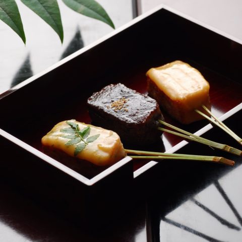 セット1内容:あわ麸1、よもぎ麸1、ごま麸1、さがら麸1、季節の花麸、田楽みそ(赤・白)、竹製田楽串(16本)、おつゆ麸1