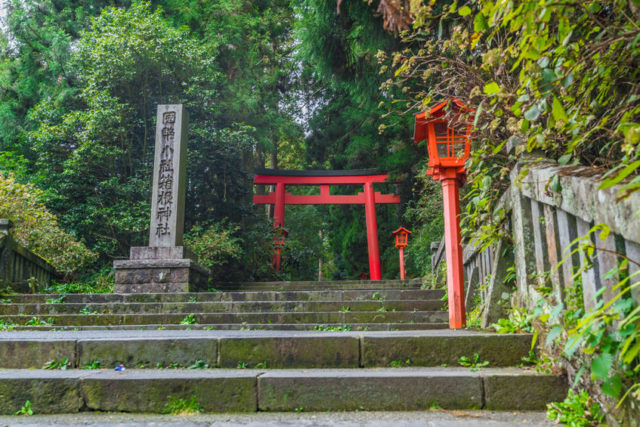 箱根大神や芦ノ湖の守護神である九頭龍大神を祀る神社で古くから箱根山岳信仰の中心。今でもパワースポットとして人気。芦ノ湖をめぐる遊覧船から見える赤い鳥居は、山上の箱根本宮に続く「平和の鳥居」です。